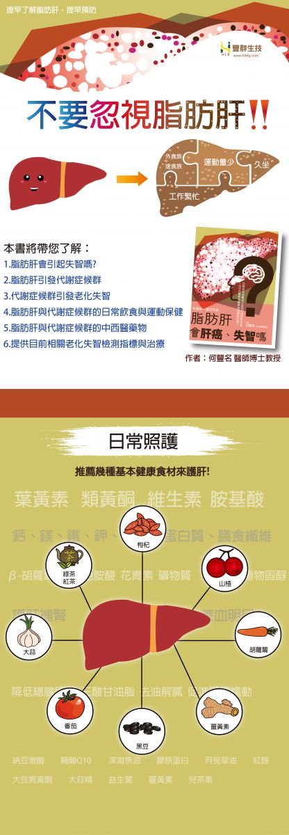 本書由中西醫、精準醫學、細胞分子基因等觀點出發,結合前瞻性研究結果與臨床經驗,提出醫療檢測與治療新方向,並兼具實用與易讀,是造福更多脂肪肝患者的好書!